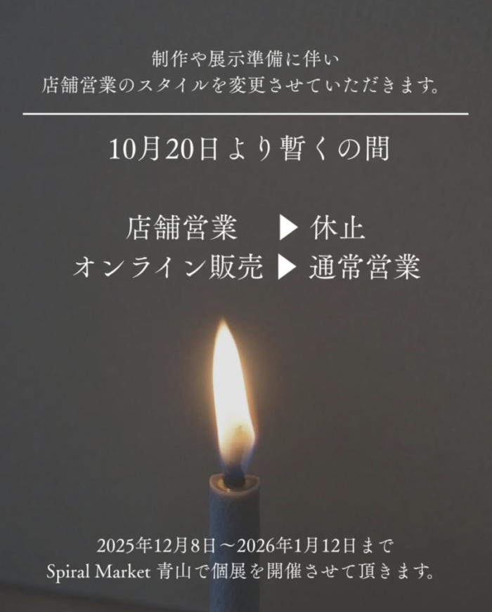 制作や展示準備も重なるため、誠に勝手ながら店舗営業をしばらくの間、おやすみとさせていただきます。
