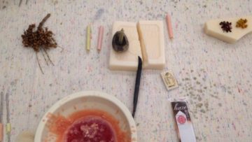 今回のワークショップでは紫根とウコン使い、薄紅色と黄色を一本ずつ作りました。