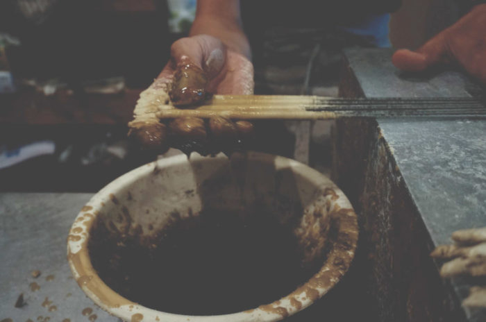 和蝋燭はすべて灯芯に溶かした蝋を手で塗り重ねる「手掛け」という技法で製作しております。