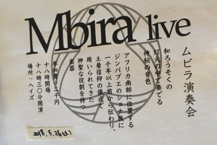 2018年5月19日(日)晴れ みなさまこんにちは。お変わりありませんか。 実近修平さんによるムビラ演奏会のご案内です。 5月26日(土)ご参加をお待ちしています... -
